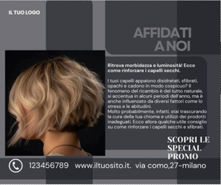 Conferisci alla tua attività un aspetto professionale e promuovi il tua attivita’ con stile ed eleganza grazie a contenuti professionali,promozioni e grafiche appositamente studiate tenendo conto delle ultime tendenze del settore. Porta la tua comunicazione visiva ad un livello straordinario!